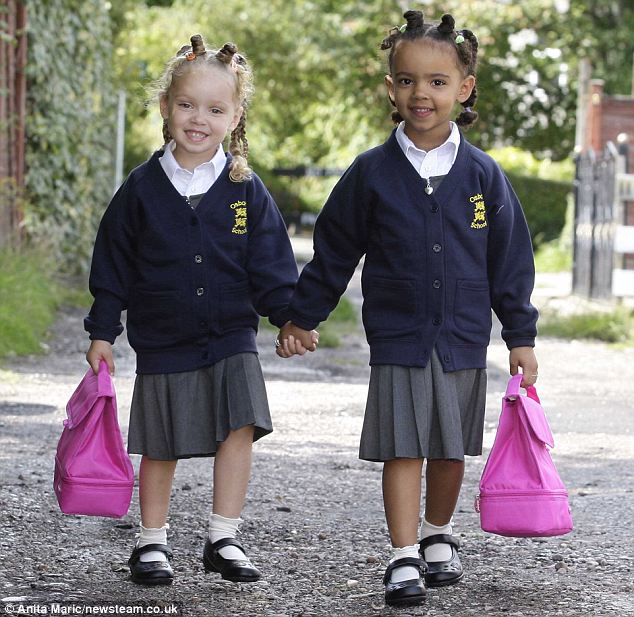 kembar Marcia dan Millie Biggs mulai ber sekolah, para guru tidak akan mengalami kesulitan untuk membedakan mereka.